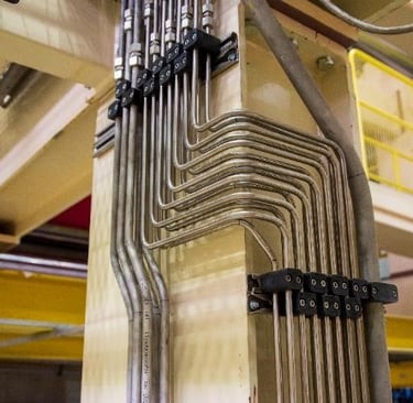 Montagem de painéis e quadros elétricos, transformadores, leitos, eletrodutos, lançamento, ligação e testes de cabos.
