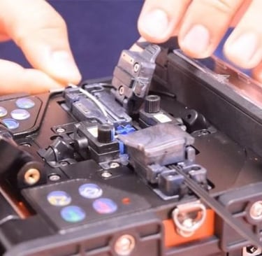 Montagem e manutenção de redes, incluindo fusões e certificação de cabos de fibra ótica.