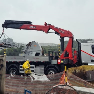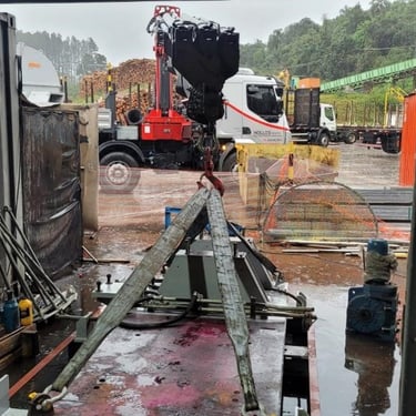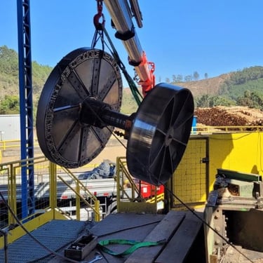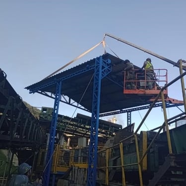 Realizada a substituição de picadores, afiadora de faca, adequação das plataformas e estrutura da correia transportadora